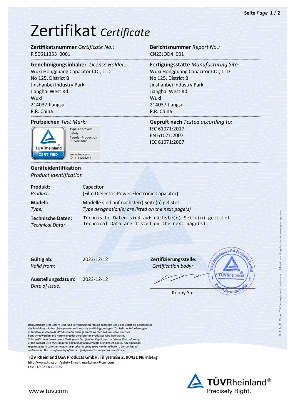 2023 Established the Electric Power Capacitor Division.