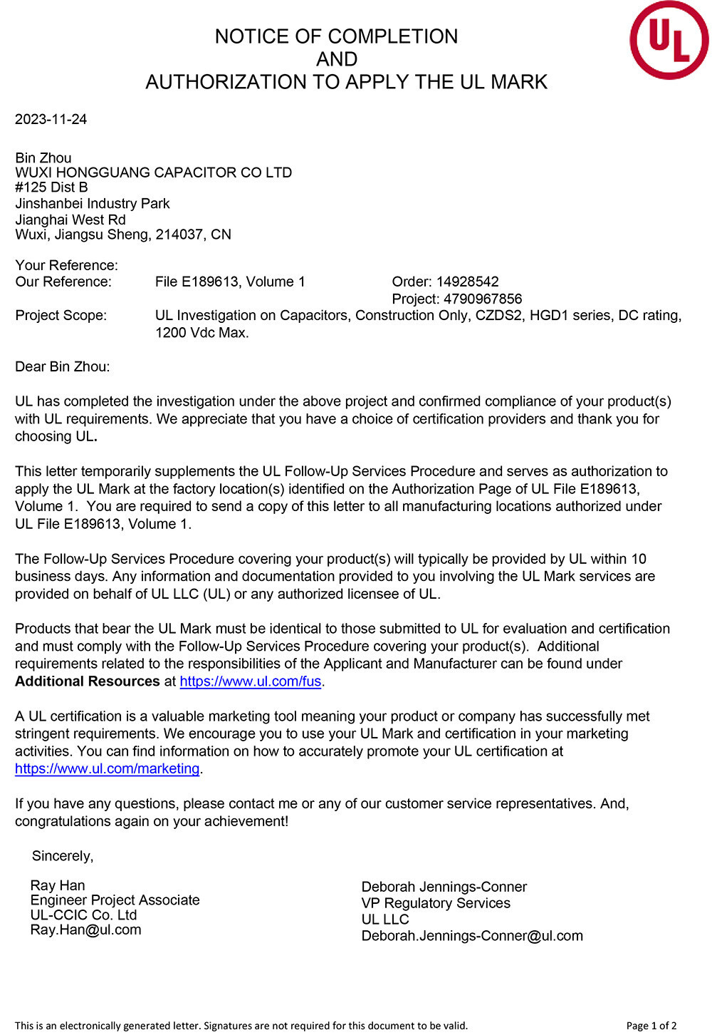 1998 Capacitors obtained UL and VDE certifications.