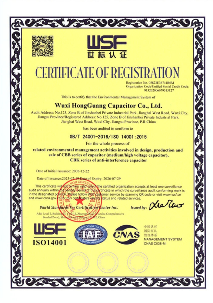 Wuxi Hongguang Capacitor Co., Ltd. was established in 1986 and has been dedicated to film capacitors for over four decades. The company has a 50,000-square-meter production base and realizes an integrated operation of research, production, sales and service. Our main products, with their stable and reliable quality, are widely used in core fields such as home appliances, medical equipment, and renewable energy, providing efficient and professional customized capacitor solutions for global customers.